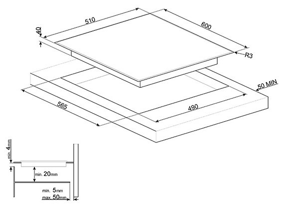| Размеры для встраивания (ШхГ) | 56.5 x 49 см |