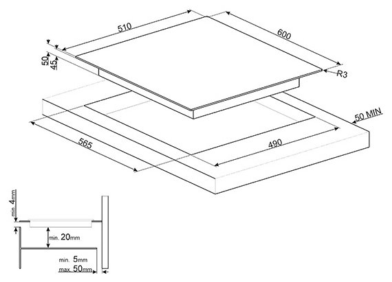 | Размеры для встраивания (ШхГ) | 56.5 x 49 см |