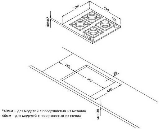 | Ширина для встраивания | 56 см |