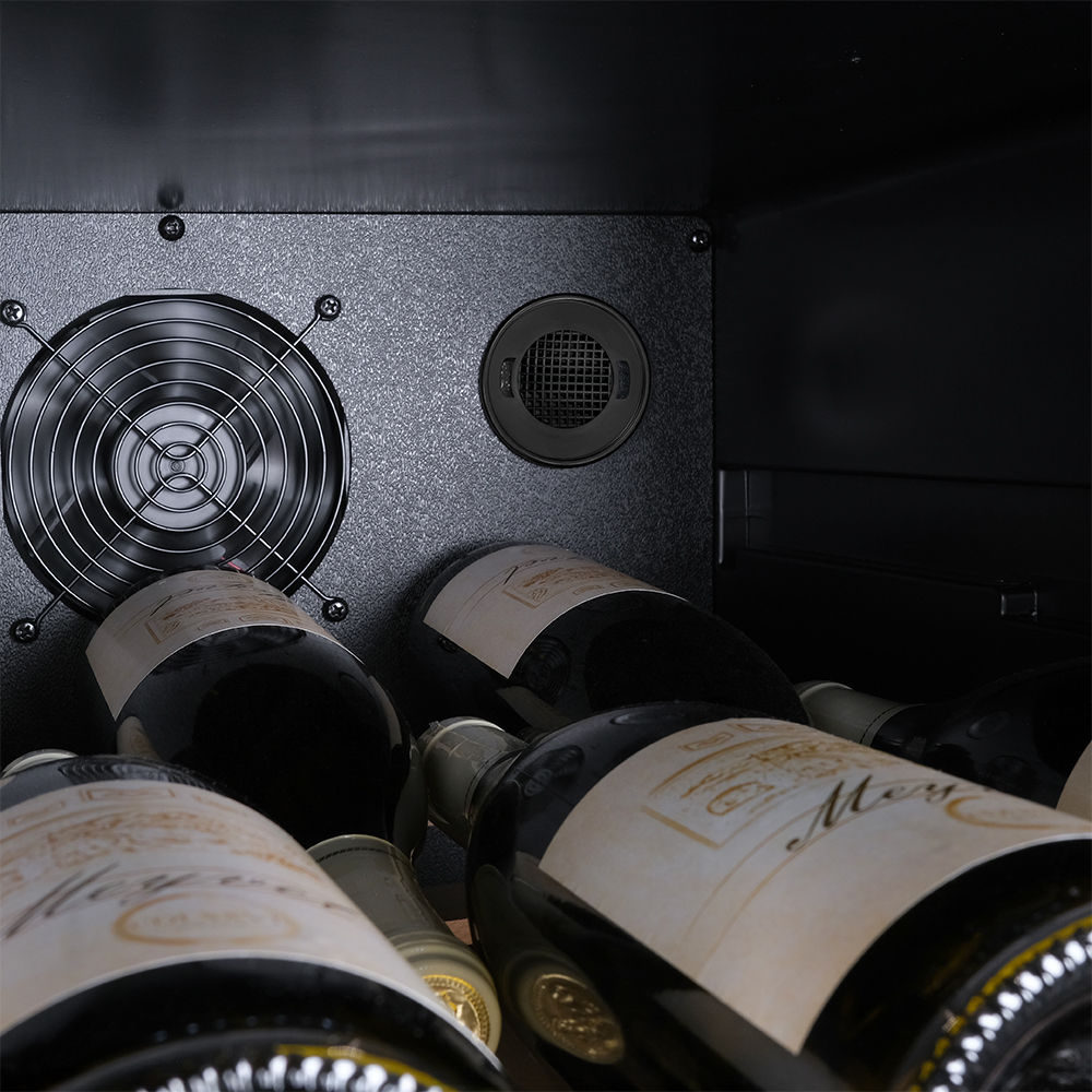 Meyvel MV126-KBF2 — отдельностоящее устройство, поэтому можно разместить его в любом удобном месте ресторана, отеля, бара или домашней винной комнаты без встраивания в мебель. Это удобно не только для создания стиля и атмосферы в интерьере, но и для предоставления легкого доступа к винам.