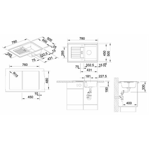 Технические характеристики Blanco Zia 45S Silgranit PuraDur 78х50см искусственный гранит