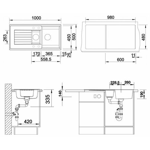 | Размер монтажного отверстия под мойку (ШхГ) | 98x48 см |