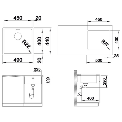 Технические характеристики Blanco Andano 450-U 49х44см нержавеющая сталь