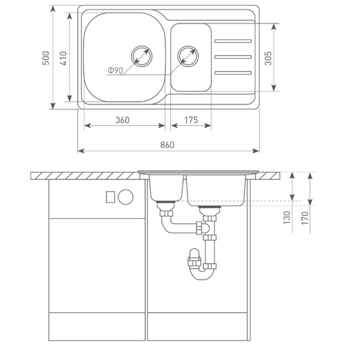 Технические характеристики Zigmund & Shtain RECHTECK 860D.8 86х50см нержавеющая сталь