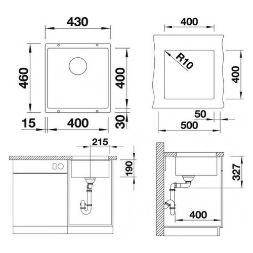 Технические характеристики Blanco Subline 400-U Silgranit PuraDur 46х43см искусственный гранит
