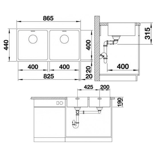 Технические характеристики Blanco Andano 400/400-IF InFino 86.5х44см нержавеющая сталь