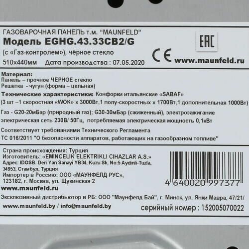Технические характеристики MAUNFELD EGHG.43.33CB2G