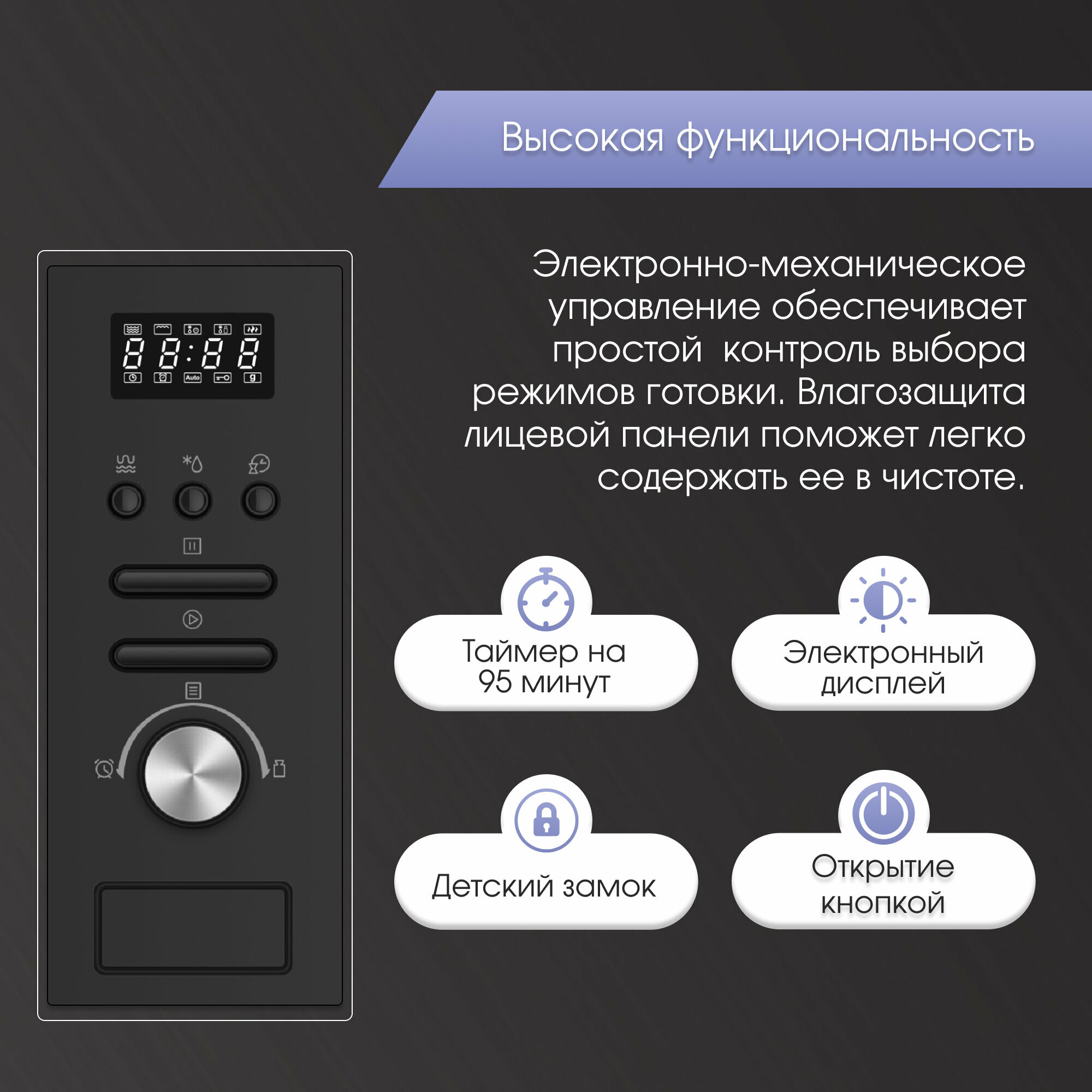 | Дополнительные режимы | автоматическая разморозка, автоматическое приготовление, звуковой сигнал отключения, программирование процесса приготовления, экспресс-режим приготовления |