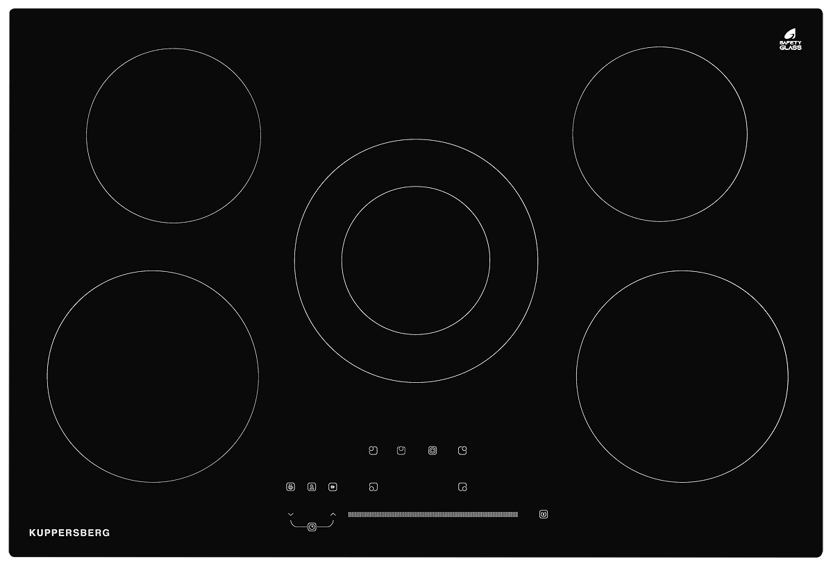 | Безопасность | защитное отключение конфорок, индикатор остаточного тепла, кнопка блокировки панели |