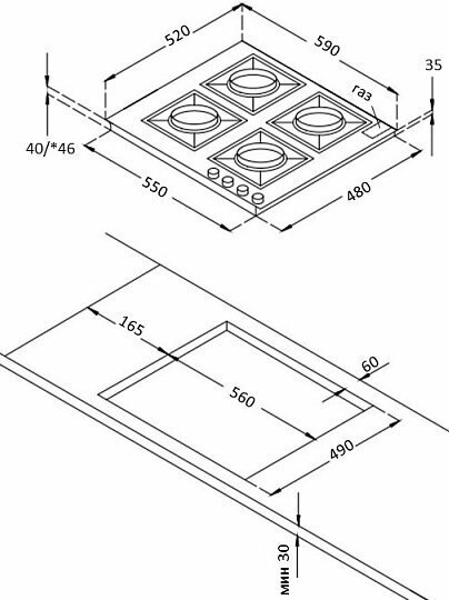 | Ширина для встраивания | 56 см |