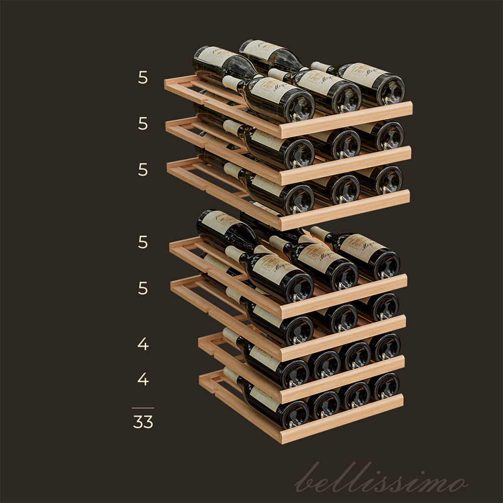 вместительность до 33 бутылок типа Бордо (0, 75л);