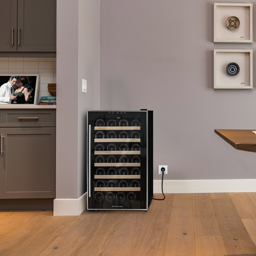 Винный шкаф Meyvel MV28-BF1 (easy) имеет большую вместимость и отлично подойдет для сохранения всех вкусовых качеств вин из домашней коллекции. Модель имеет 6 удобных полок , которые могут вместить в себя до 28-ми бутылок типа Бордо.