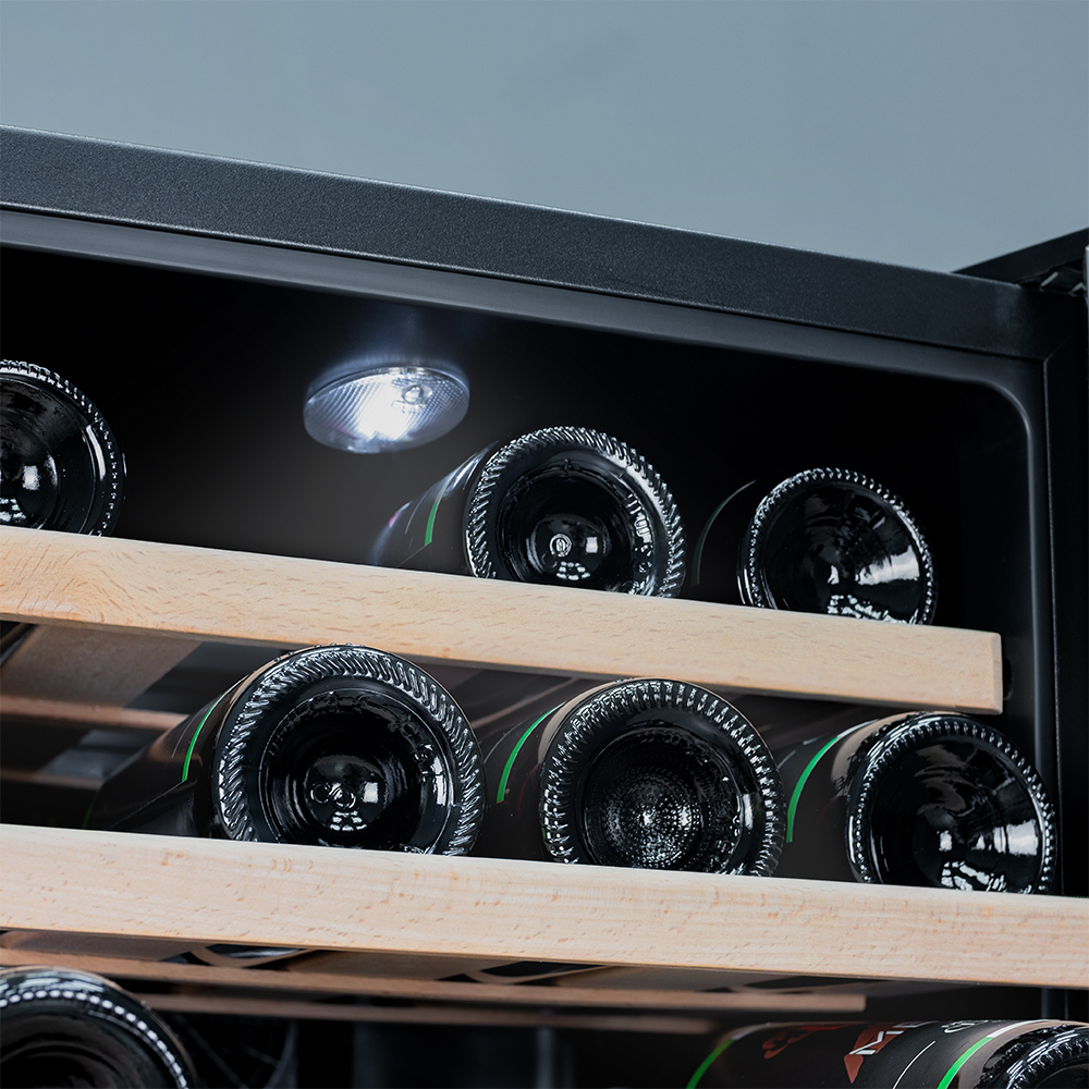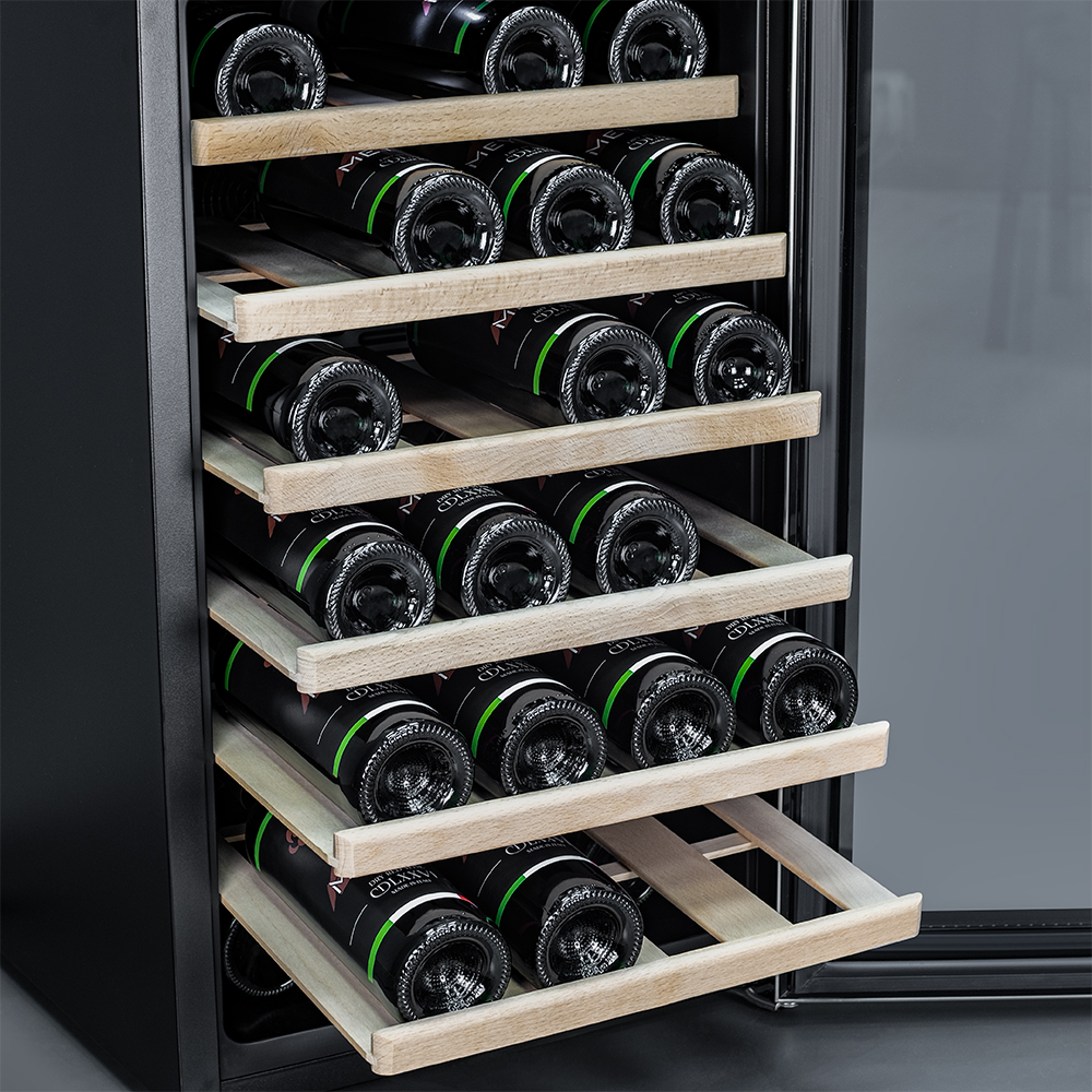 Объёмное пространство внутри винного шкафа позволяет с легкостью разместить в нём большое количество разнообразных винных напитков абсолютно на любой вкус.