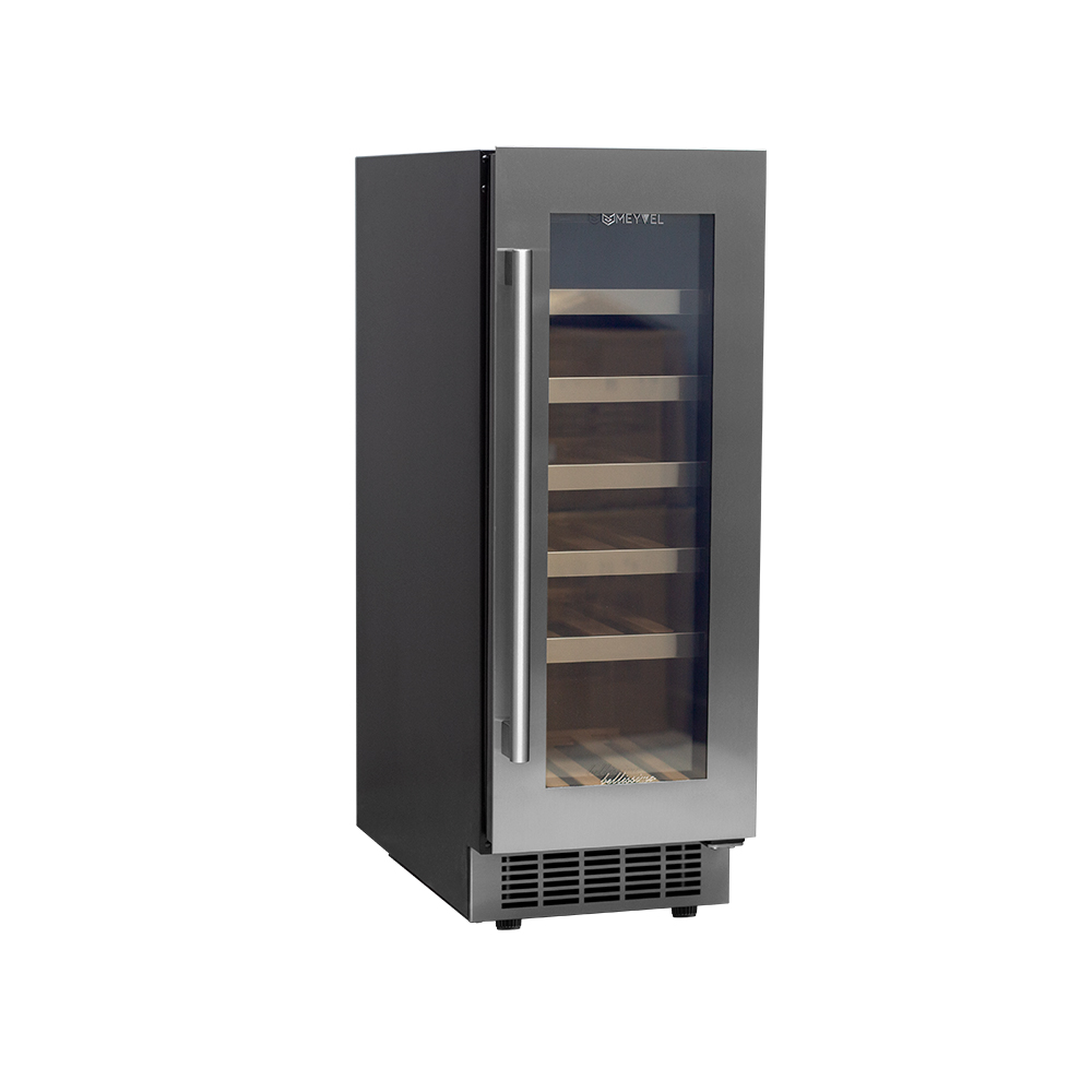 Компрессорный винный шкаф Meyvel MV18-KST1 обладает большой вместимостью и способен разместить до 19 бутылок. Располагаются они на полках из массива бука. Внутреннее пространство шкафа имеет возможность настраивать температуру в диапазоне от + 5°C до +18°C. Холодильник поддерживает влажность в диапазоне 60-80%, как в настоящем винном погребе.