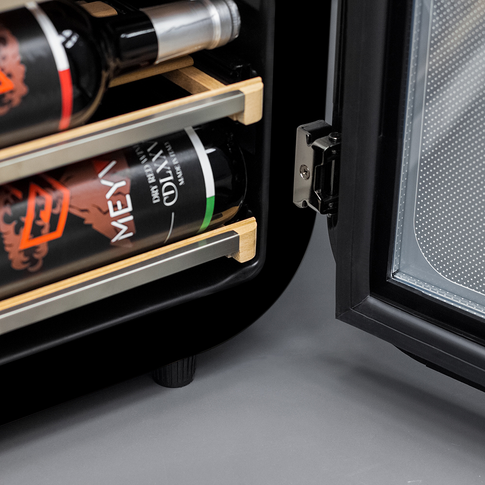Модель MV34-KBF1 имеет привлекательный внешний вид, сочетающий в себе неподвластное времени очарование натуральных материалов с высокотехнологичными системами сохранения продуктов. Винный холодильник Meyvel MV34-KBF1 оснащен дверью с тройной защитой от ультрафиолетовых лучей и отлично подойдет для хранения и созревания различных сортов вин. Динамическая система охлаждения обеспечивает оптимальную температуру для вина и сохраняет необходимую влажность внутри камеры.