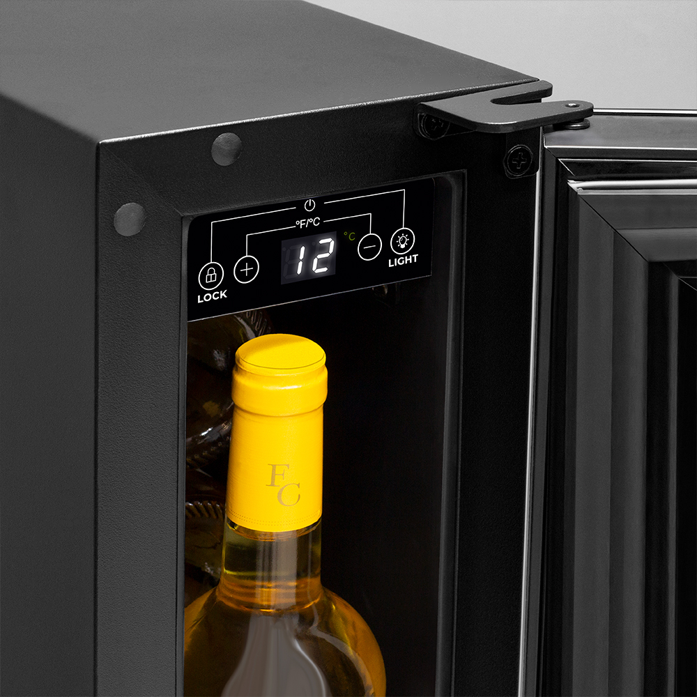 Компрессорный винный шкаф Meyvel MV9NH-KBT1 несмотря на небольшой размер, обладает большой вместимостью и дает возможность разместить до 9 бутылок. Располагаются они на держателях из массива бука. Внутреннее пространство шкафа поддерживает комфортную для вина температуру от +5 до +20 и имеет самую большую вместимость среди аналогичных винных шкафов. Преимуществом этой модели является возможность разместить внутри одну высокую бутылку. Так же, MV9NH-KBT1 данная модель поддерживает влажность в диапазоне 60-80%, как в настоящем винном погребе.