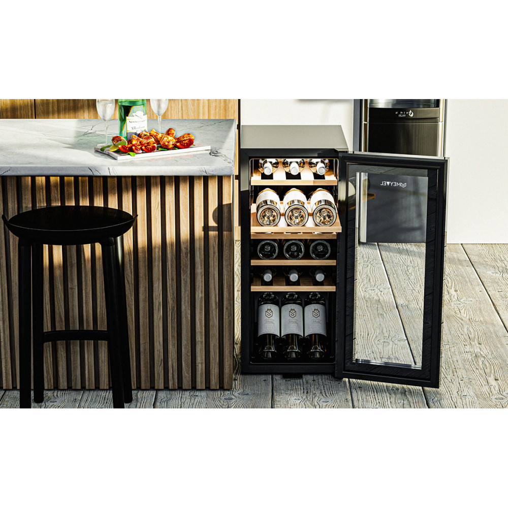 Винный шкаф Meyvel MV18-KBF1Винный шкаф Meyvel MV18-KBF1 – отличный выбор для ценителей вина, которые хотят организовать элегантную и практичную энотеку. Это сильное и вместе с тем функциональное устройство способно вместить до 18 бутылок типа «Бордо» 0,75 литра, обеспечивая их идеальное хранение.