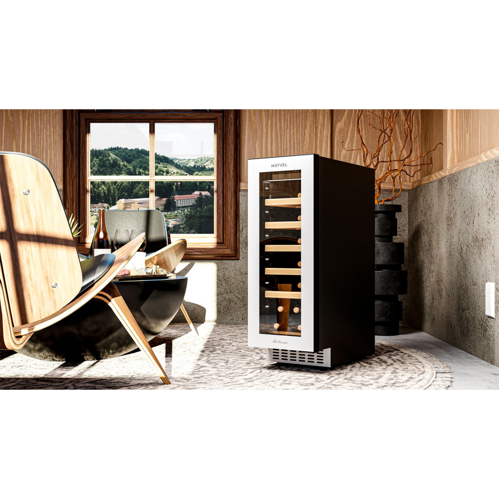 Компрессорный винный шкаф Meyvel MV19NH-KWT1 обладает оптимальной вместимостью и даёт возможность разместить до 19 бутылок стандартного типа Бордо (0,75 л). Располагаются они на выдвижных полках из дерева. Внутреннее пространство шкафа поддерживает комфортную для вина температуру от +5°C до +20°C. Так же, эта модель поддерживает влажность в диапазоне 60-80%, как в настоящем винном погребе.