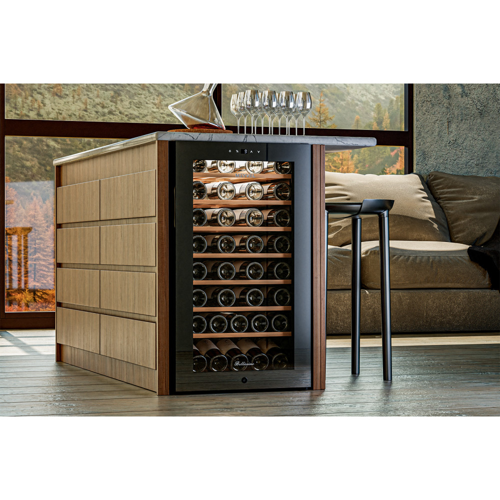Винный шкаф Meyvel MV52-KBF1 – отличный выбор для ценителей вина, которые хотят организовать элегантную и практичную винотеку. Это сильное и вместе с тем функциональное устройство способно вместить до 52 бутылки типа «Бордо» 0,75 литра, обеспечивая их идеальное хранение. А без демонстрационной полки вместимость увеличивается до 56 бутылок.