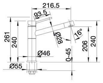 Технические характеристики Blanco ALTA (хром) однорычажный