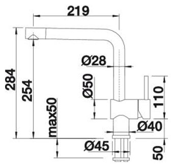 Технические характеристики Blanco LINUS (нержавеющая сталь) однорычажный