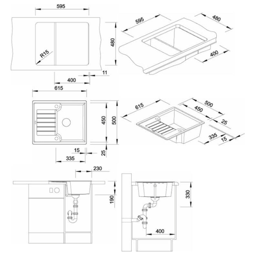 | Размер монтажного отверстия под мойку (ШхГ) | 59.5x48 см |