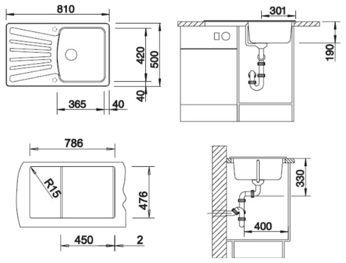 | Размер монтажного отверстия под мойку (ШхГ) | 78.6x47.6 см |