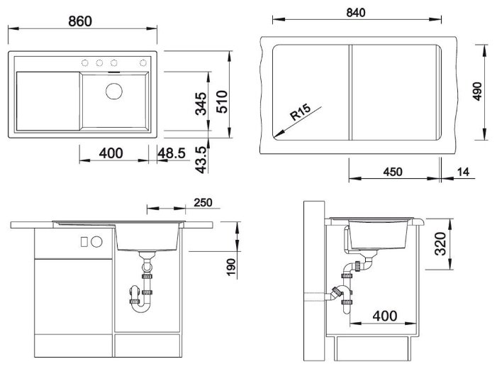Технические характеристики Blanco Zenar 45S Silgranit PuraDur (чаша слева) 86х51см искусственный гранит