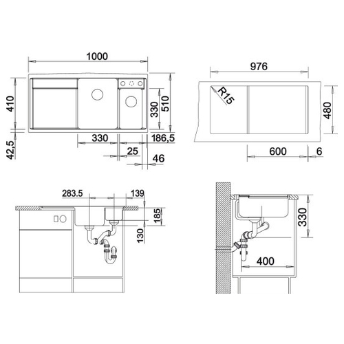 Технические характеристики Blanco Axia II 6S Silgranit PuraDur (чаша справа) 100х51см искусственный гранит