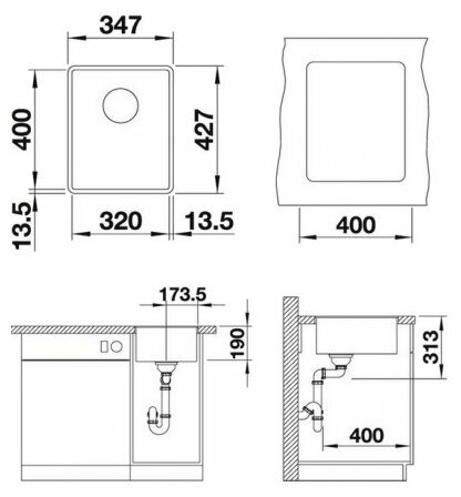 Технические характеристики Blanco Subline 320-F 34.7х42.7см искусственный гранит