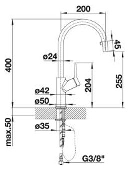 | Излив | длина 200 мм, высота 255 мм |