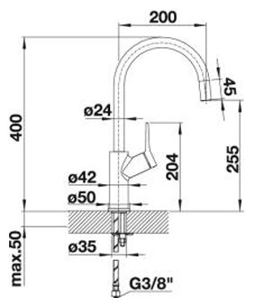 | Излив | длина 200 мм, высота 255 мм |