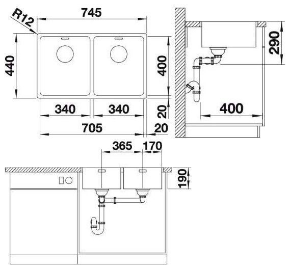 Технические характеристики Blanco Andano 340/340-IF InFino 74.5х44см нержавеющая сталь