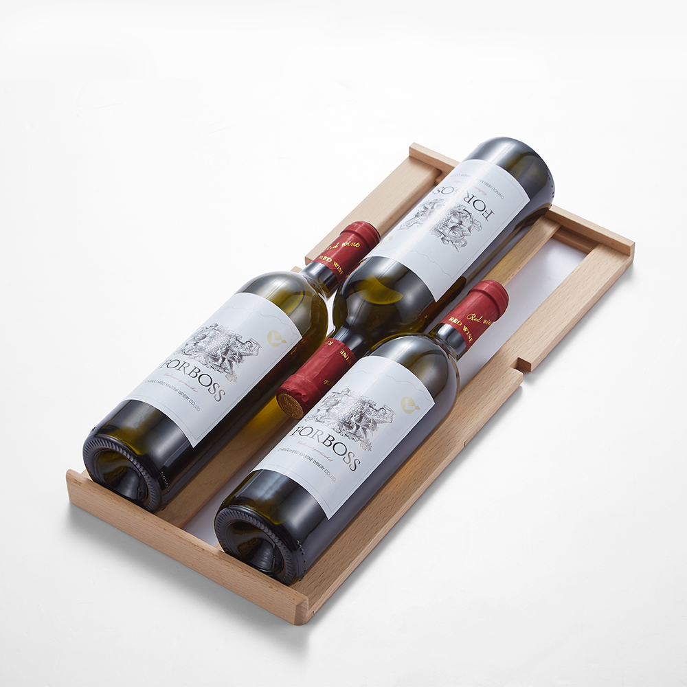 Для размещения винных бутылок, шкаф оснащен 7 крепкими полками из массива бука: выдвижные (4), выдвижные полуполки (3).