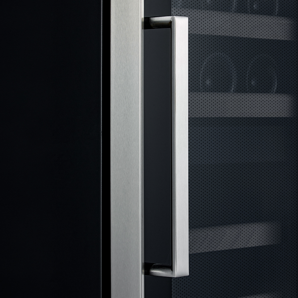 Двойное стекло с защитой от прямых УФ-лучей поддерживает качественные условия хранения вина. Для размещения винных бутылок, шкаф оснащен 4 крепкими полками из массива бука.