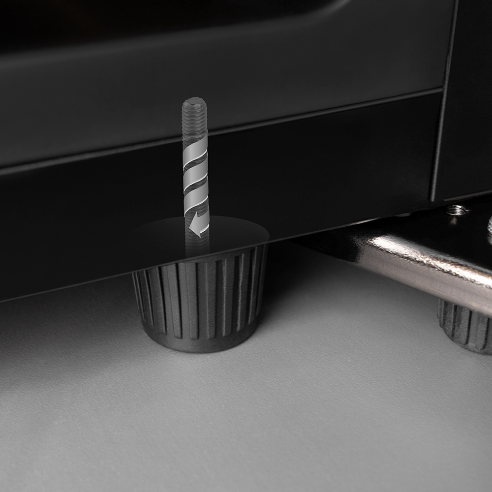 после установки винного шкафа необходимо проверить, насколько ровно Вы настроили ножки, так как использование винного шкафа, установленного под углом, может привести к поломке дверцы, а также к повышенному шуму.