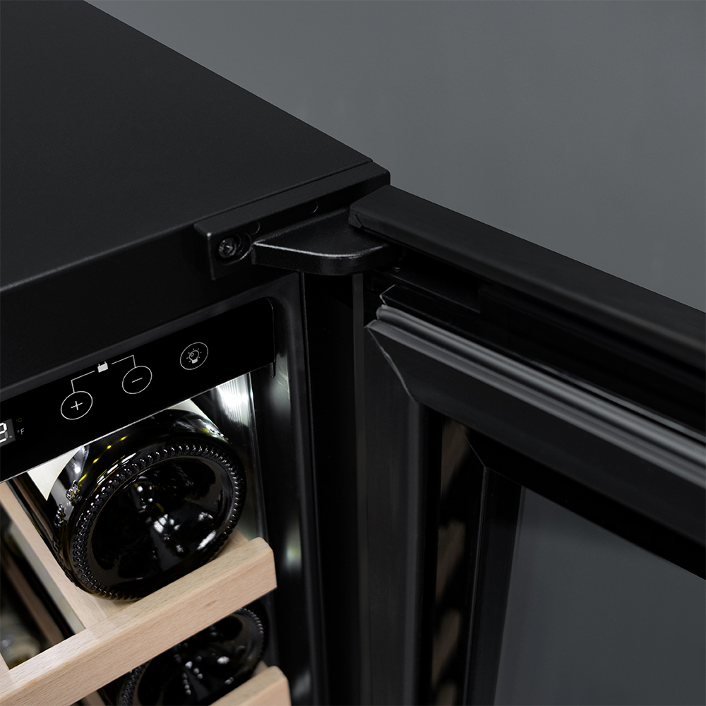 необходимо установить винный шкаф по уровню и отрегулировать зазоры между дверью и мебельным фасадом, чтобы не повредить их.