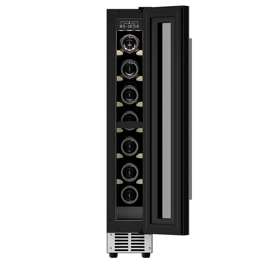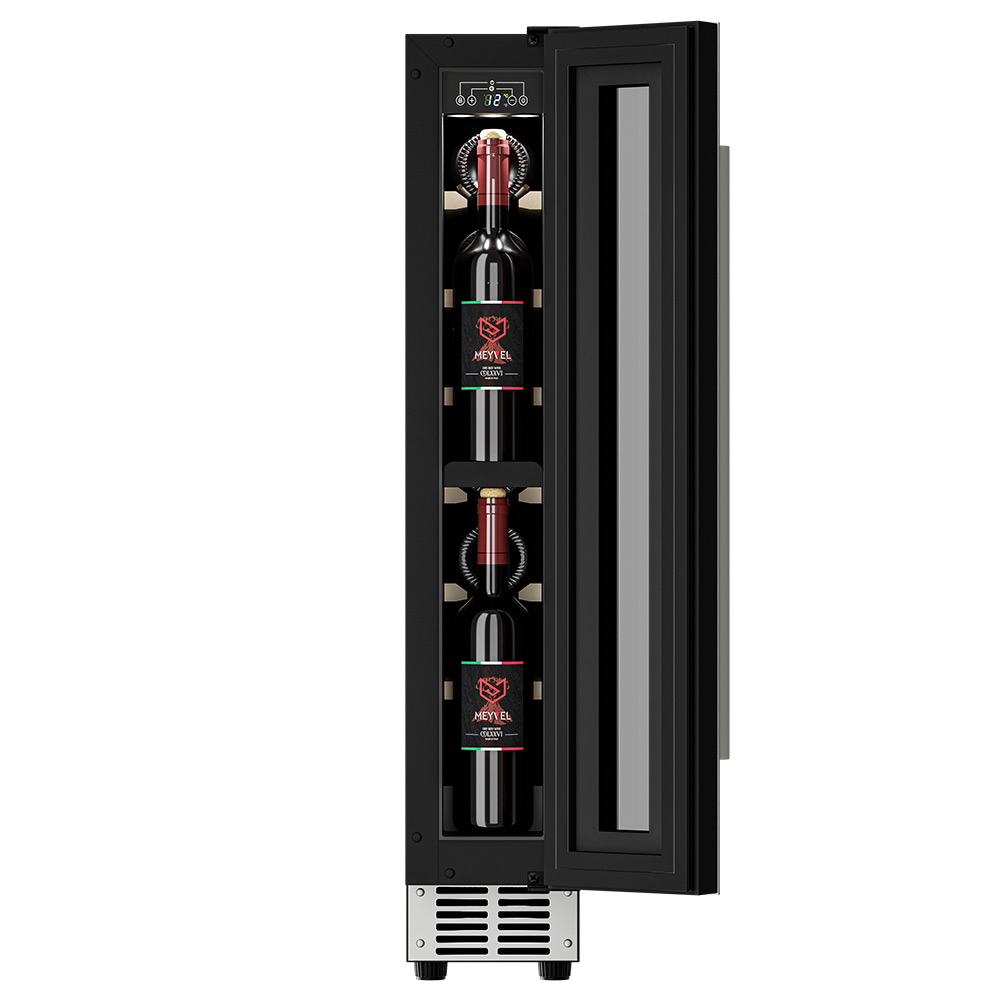 Компрессорный винный шкаф Meyvel MV9-KST1 несмотря на небольшой размер, обладает большой вместимостью и дает возможность разместить до 9 бутылок. Располагаются они на держателях из массива бука. Внутреннее пространство шкафа поддерживает комфортную для вина температуру от +5 до +20 и имеет самую большую вместимость среди аналогичных винных шкафов. Преимуществом этой модели является возможность разместить внутри одну высокую бутылку. Так же, MV9-KST1 данная модель поддерживает влажность в диапазоне 60-80%, как в настоящем винном погребе.