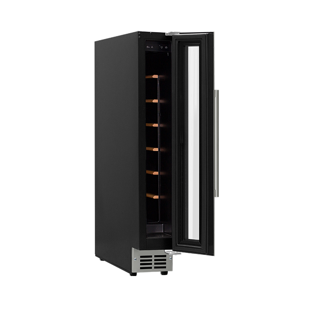 Компрессорный винный шкаф Meyvel MV8-KST1 обладает большой вместимостью и способен разместить до 8 бутылок. Располагаются они на держателях из массива бука. Внутреннее пространство шкафа имеет возможность настраивать температуру в диапазоне от + 5°C до +18°C. Холодильник поддерживает влажность в диапазоне 60-80%, как в настоящем винном погребе.