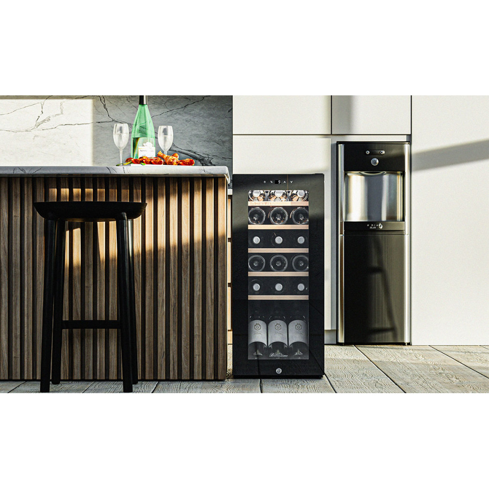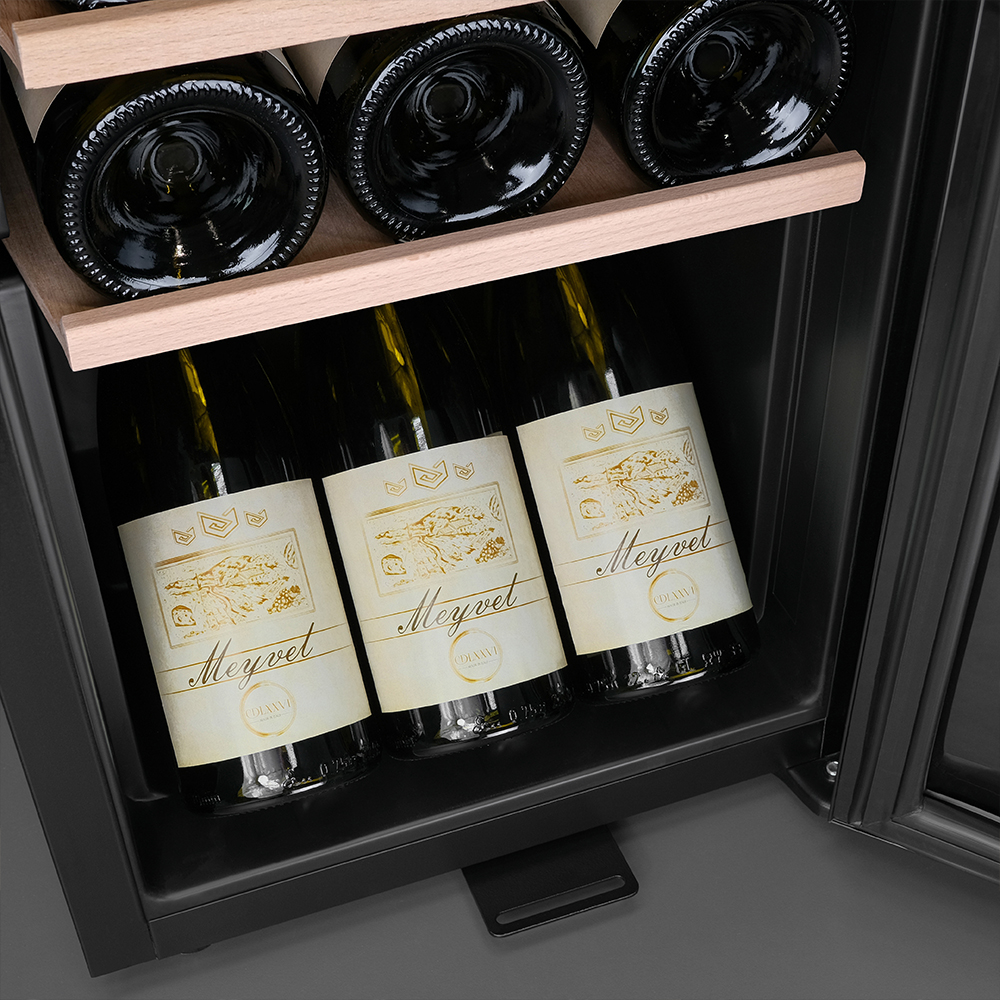 С эффективным типом прямого охлаждения и поддержкой температуры в диапазоне от +5 до +20°C, это устройство содержит вина в оптимальном состоянии. А с влажностью, контролируемой в пределах 60-80%, напитки долго не потеряют свои вкус и аромат. Двойное стекло с УФ-фильтром обеспечивает надежную защиту от пагубных солнечных лучей.