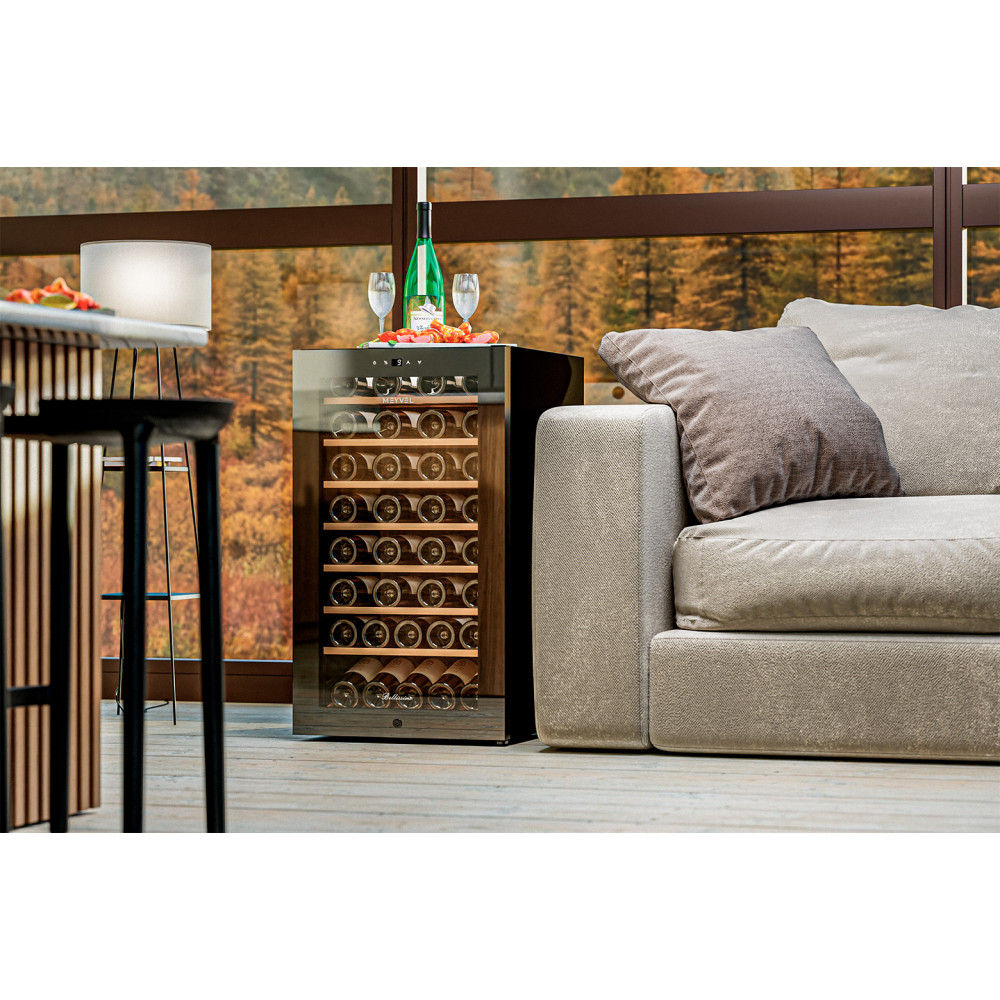 С эффективным типом прямого охлаждения и поддержкой температуры в диапазоне от +5 до +20°C, это устройство содержит вина в оптимальном состоянии. А с влажностью, контролируемой в пределах 60-80%, напитки долго не потеряют свои вкус и аромат. Двойное стекло с УФ-фильтром обеспечивает надежную защиту от пагубных солнечных лучей.