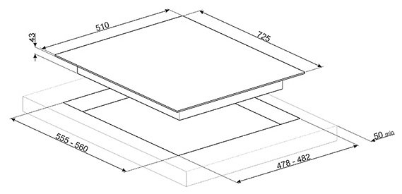 | Размеры для встраивания (ШхГ) | 55.5 x 47.8 см |